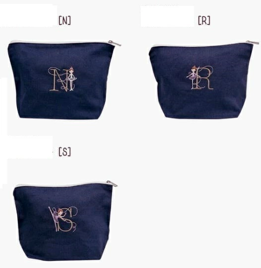 バレリーナの刺繍がイニシャルごとに違う、可愛い濃紺のポーチです。