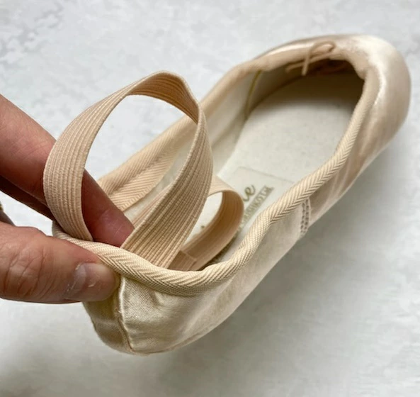 このようなしっかりした「バレエシューズの甲」についているようなゴムの方が