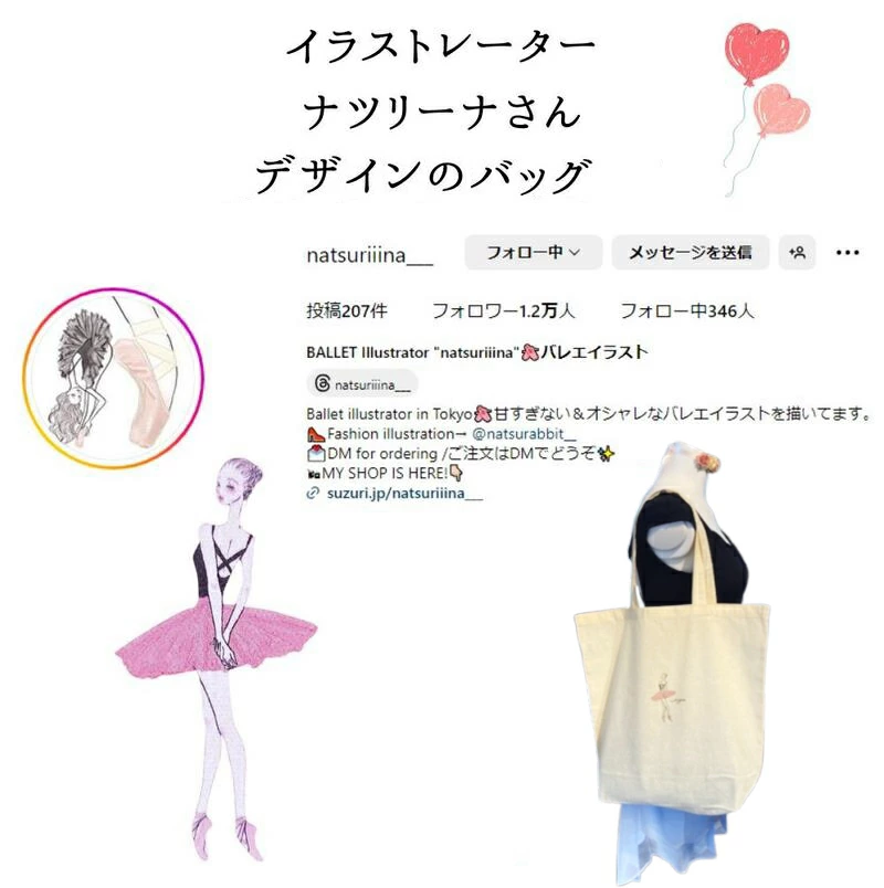 バレエバッグ トートバッグ エコバッグ バッグ:ナツリーナ さんデザイン (コットン)