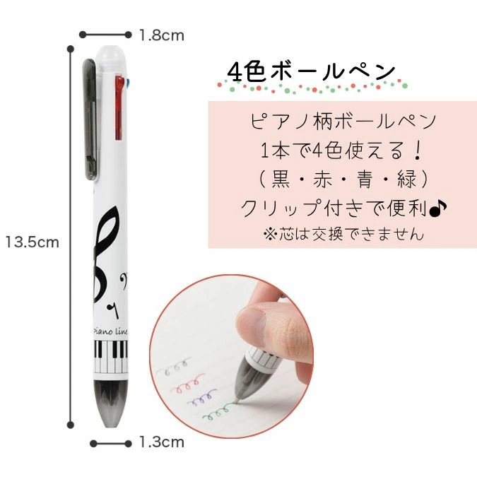 ボールペン:4色切替(黒・赤・緑・青)/芯交換不可/ピアノ柄プリント