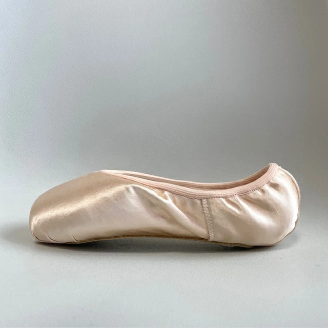 クラウンが高く、プラットフォームが中程度、Vカット、伸縮性のあるバインディング、簡単にドゥミを通せるミラクルペースト(接着剤)を使用。