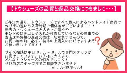 椿ちゃんさん★★★★★とても丁寧に作ってあり足を痛めない感じです。サイズのご相談もささて頂き、的確なアドバイスでとても感動しました。サイズもピッタリでした。まさに夢のようなポワントですね。2020年10月10日 11:12