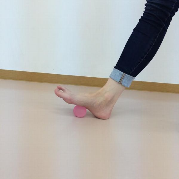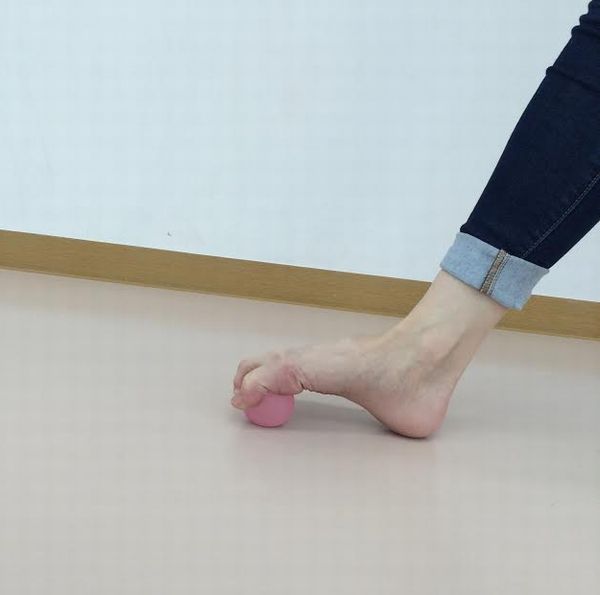 ボールを踏んで、コロコロ…足の裏をほぐします。