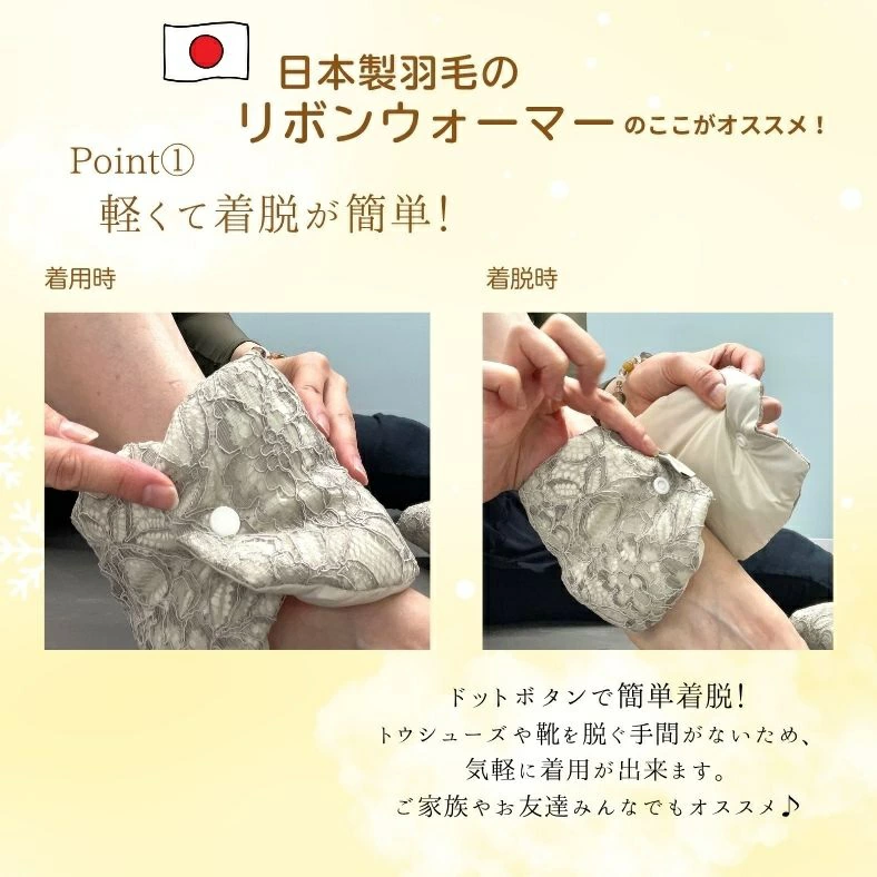 【Jumou】ダウン リボンウォーマー 足首 バレエ レッグウォーマー 羽毛 日本製